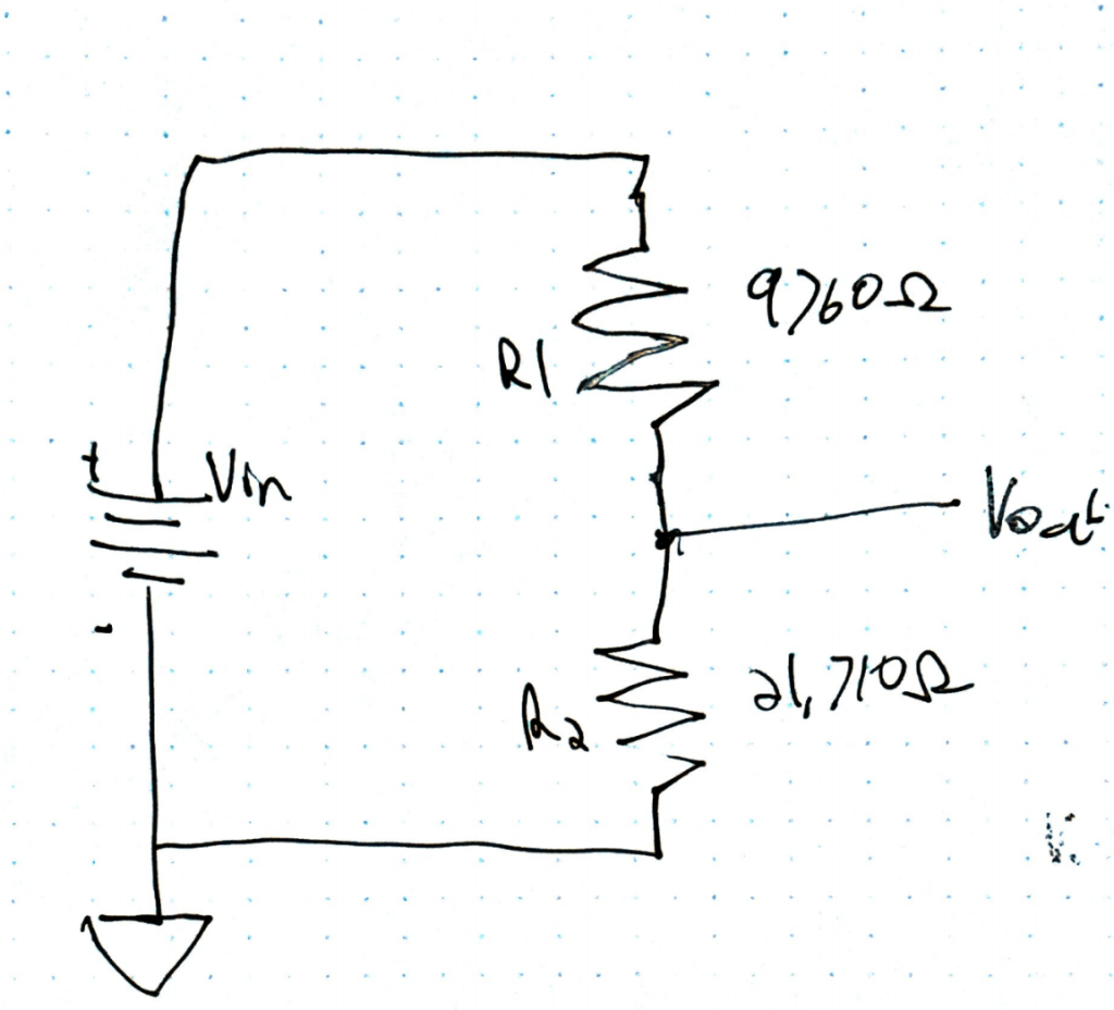 Calculations: Vout = 8.9V * 9,760ohms/31,470ohms = 2.78 V